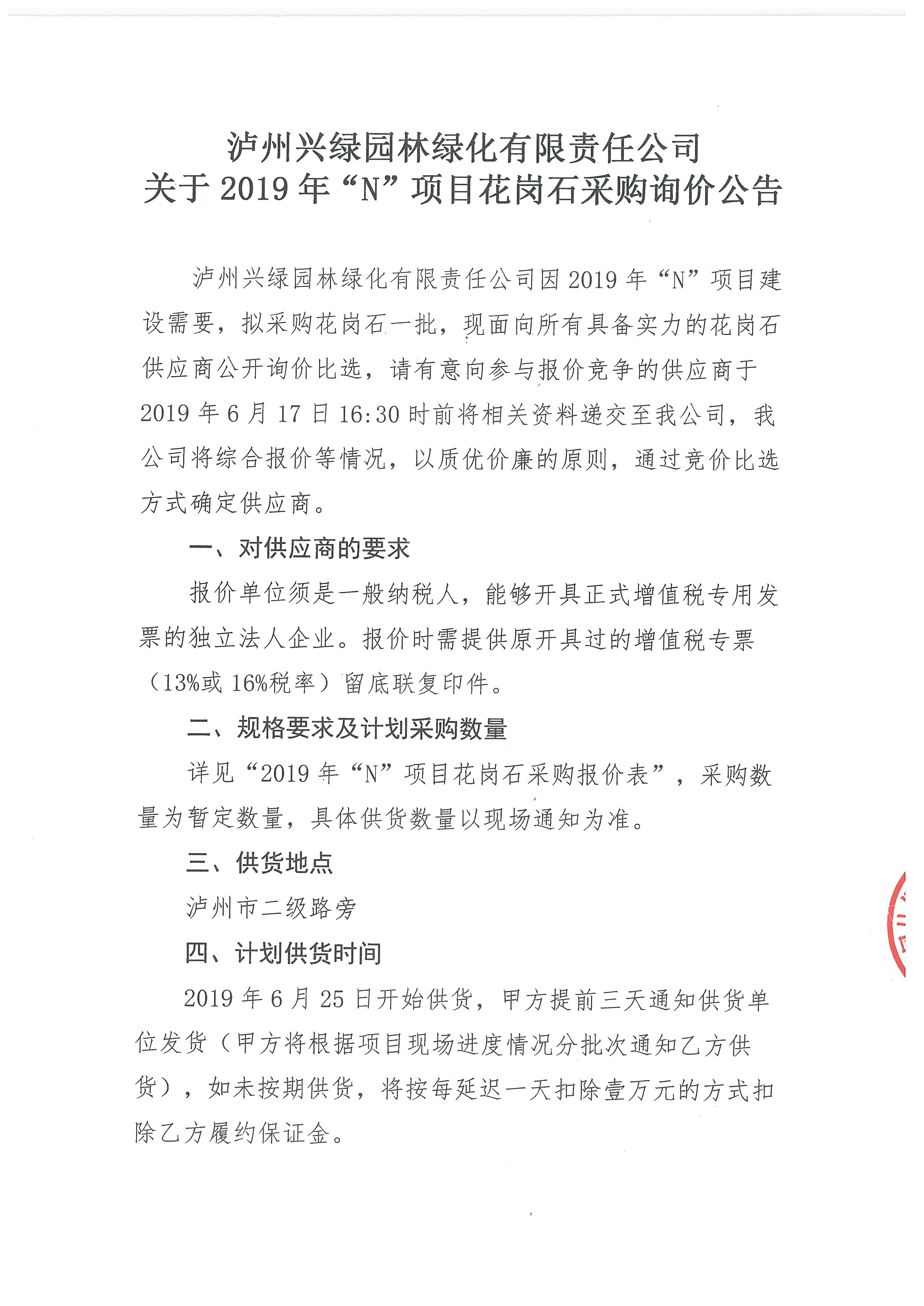 2019年“N”項(xiàng)目花崗石采購(gòu)詢價(jià)公告